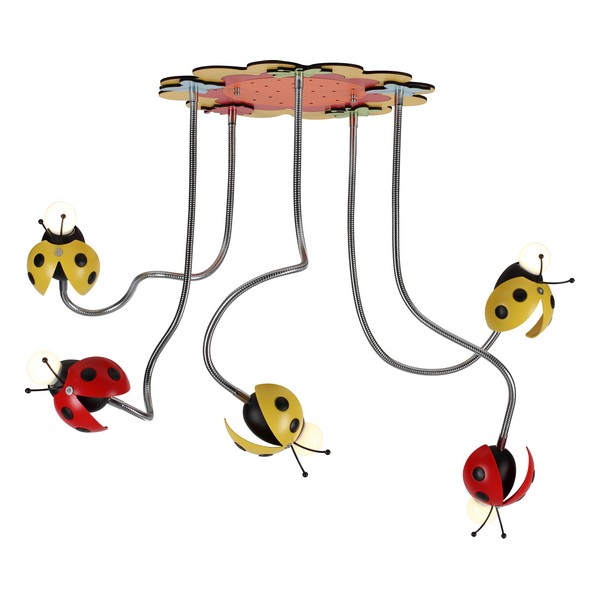 Plafonska lampa Forma DF7600-5C Unesite vedrinu i razigranost u dečiju sobu sa motivima bubamara. Sa pet E27 grla, omogućava izbor sijalice po vašoj želji. Izrađena od medijapana i plastike, ova lampa nudi sigurnost i šarmantan dizajn koji će oduševiti mališane. Idealna za sobe punih mašte! Dimenzije 400mmX750mm